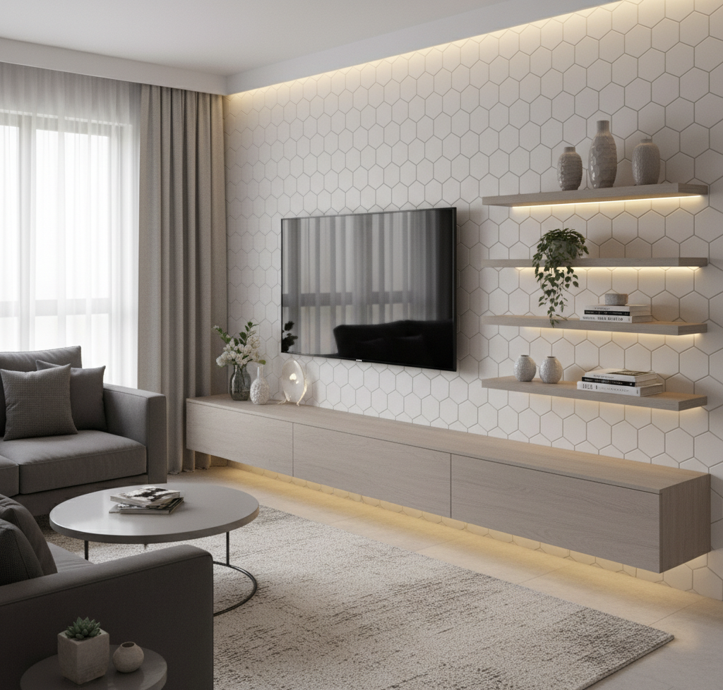 At Bhavana Interiors & Decorators, our team of expert interior designers understands that a well-conceived media console is the cornerstone of a harmonious living space.